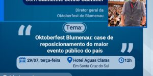 “Oktoberfest Blumenau: case de reposicionamento do maior evento público do país” é o tema que traz a Santa Cruz do Sul o diretor-geral da Oktoberfest Blumenau, Guilherme Benno Guenther. …
