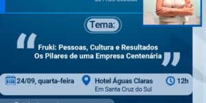 A centenária história de sucesso da Fruki Bebidas será o destaque da edição de setembro do tradicional evento empresarial Tá na Hora, promovido pela Associação Comercial e Industrial (ACI) de Santa Cruz …