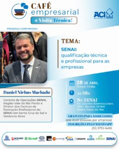 Café Empresarial: Senai – Qualificação Técnica e Profissional para as empresas Publicado em 16 de abril de 202616 de abril de 2026 por ACI Santa Cruz do Sul